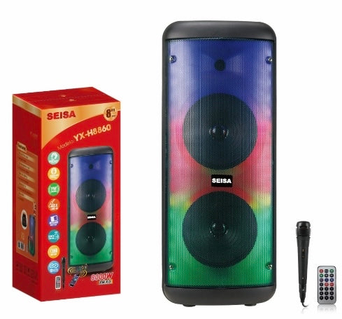 Parlante portátil Equipo con luces led incluye micrófono con ruedas - AGOTADO