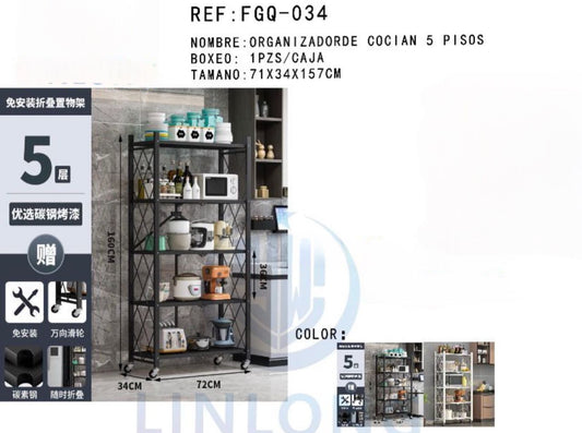 Estante organizador de 5 pisos plegable de metal portátil resistente