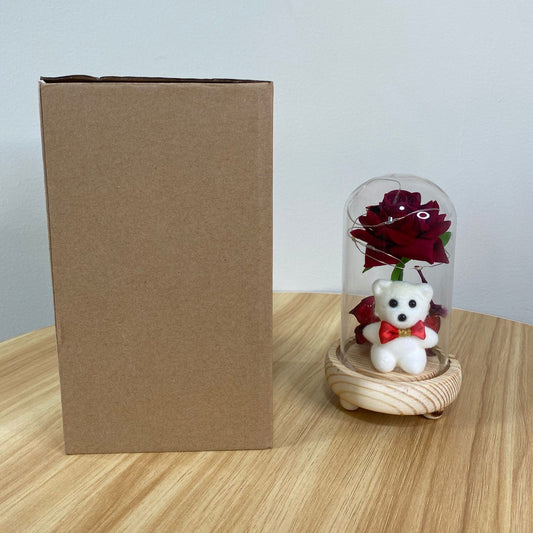 Rosa eterna cúpula de cristal con luz LED 19cm