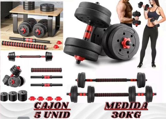 Set de pesas 30kg mancuernas ajustables con barra