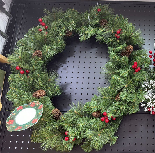 Corona guirnalda premium 60cm diámetro navidad con piña y cereza NCSDS2517