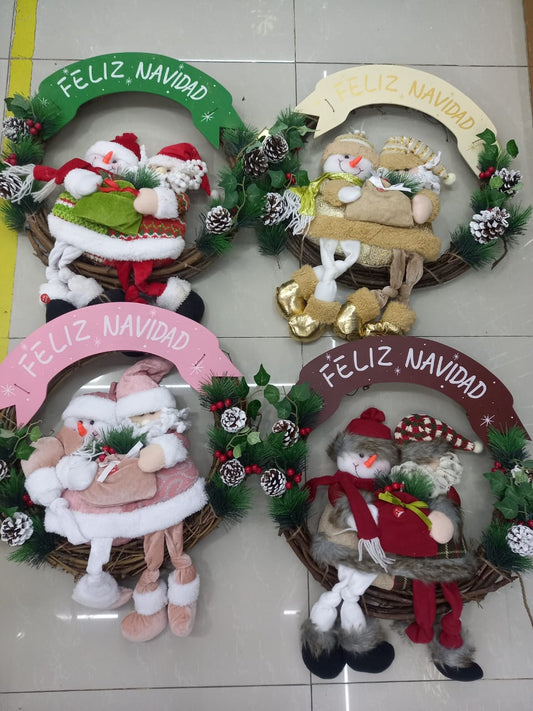 Coronas navideñas navidad de madera 45CM papa noel y hombre de nieve