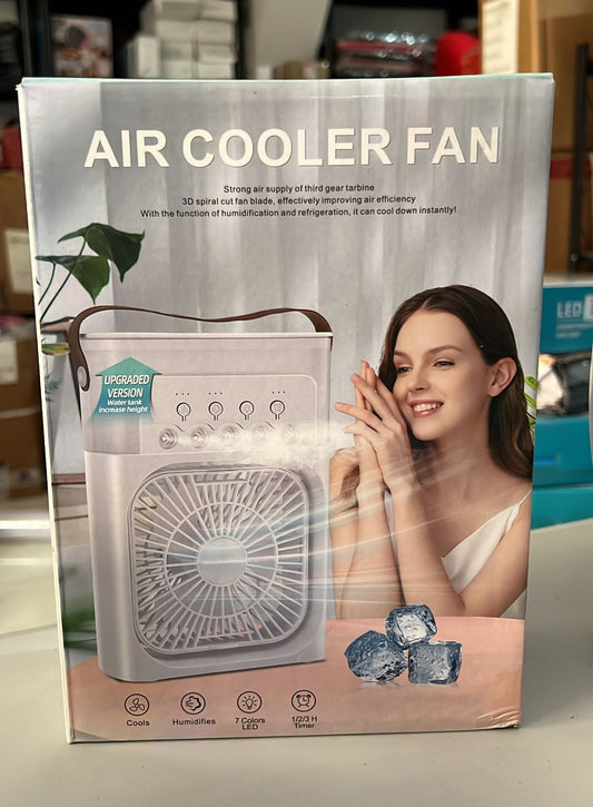 Ventilador portátil de aire frio 3-en-1 Enfriador de aire, ventilador y humidificador de escritorio luz RGB temporizador
