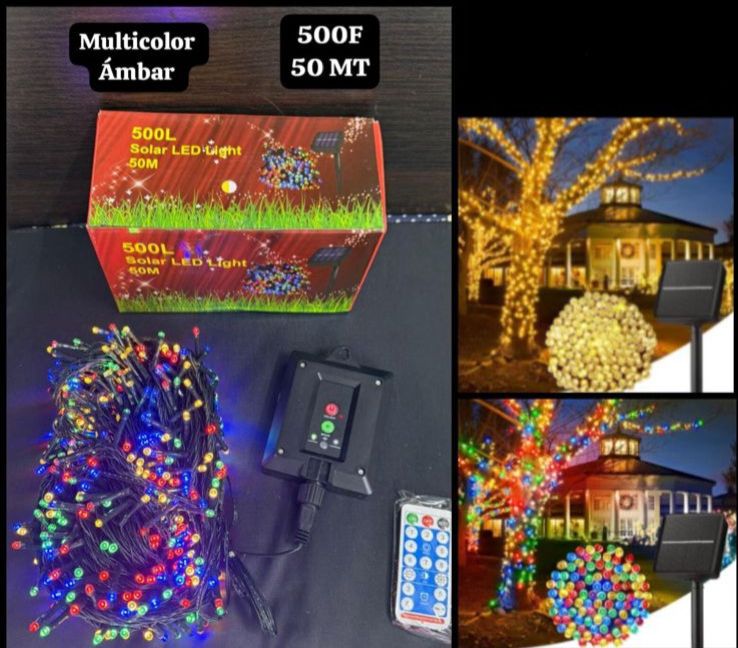 Estas luces lineales con panel solar de 50 metros (modelo CLSD299) ofrecen una iluminación navideña eficiente y ecológica. Gracias a su sistema solar, ahorran energía al cargarse durante el día y brindar un brillo constante por la noche. Su control integrado facilita el manejo, permitiendo crear ambientes festivos sin complicaciones. Perfectas para decorar espacios amplios con un toque sostenible y económico.