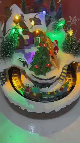 Villa navideña nacimiento de navidad con tren 20x20x16cm musical CLH521